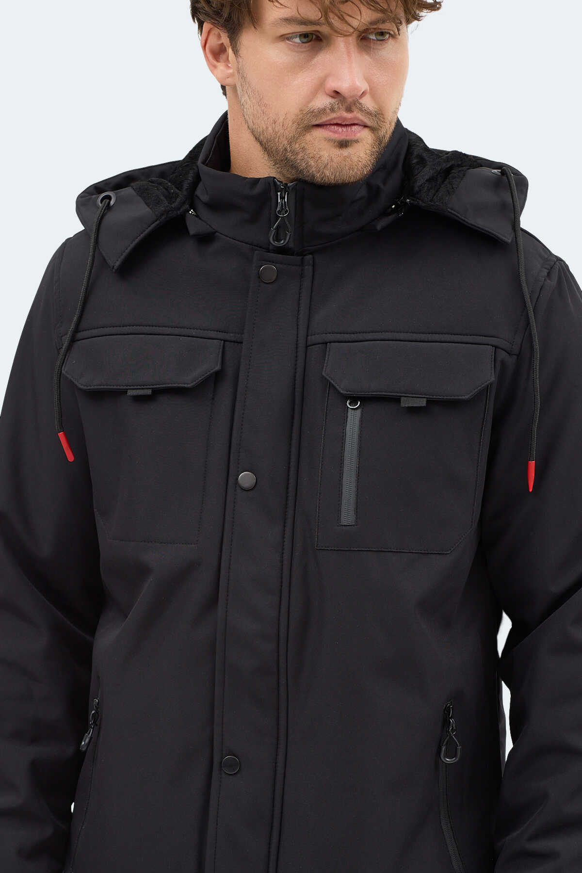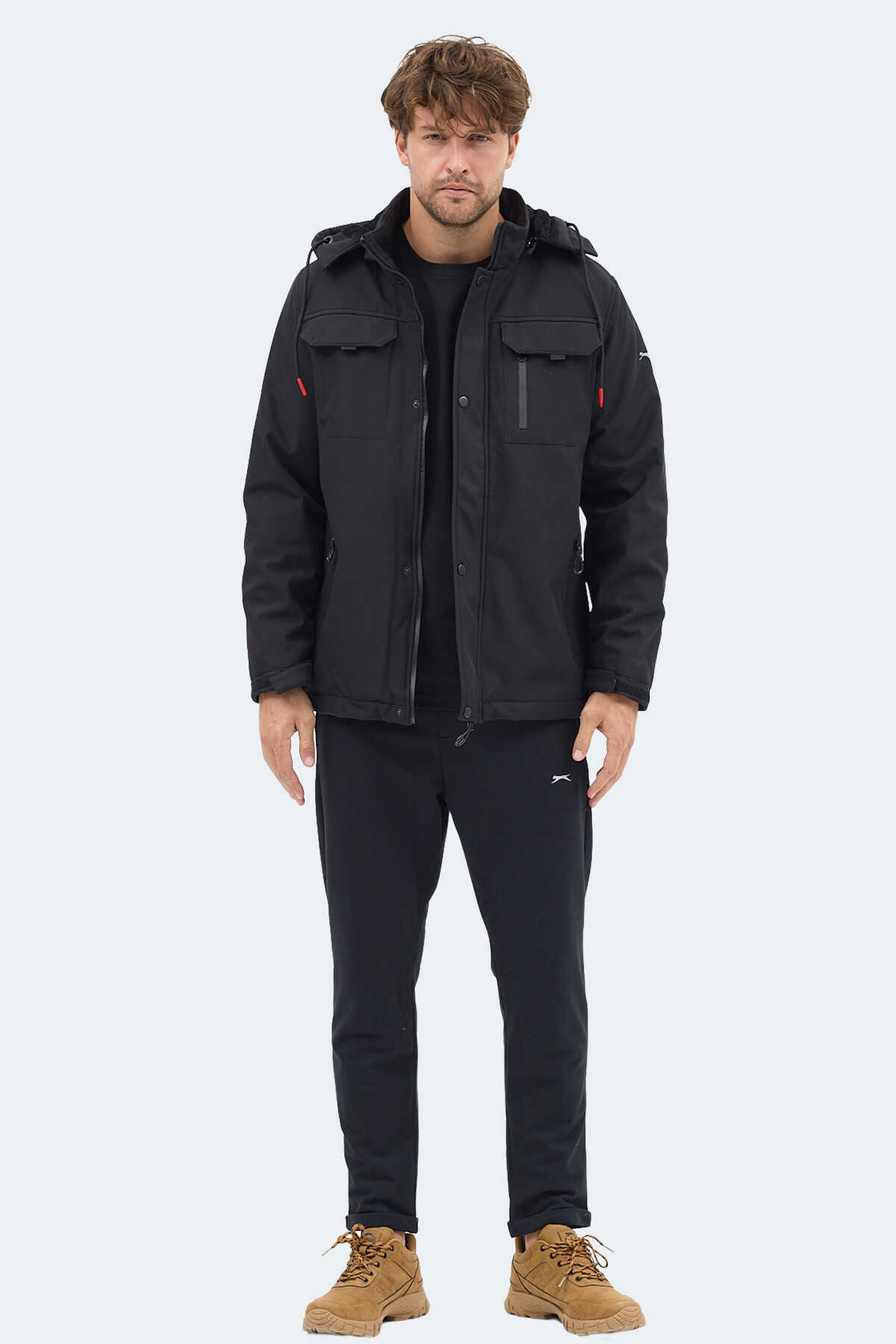 Slazenger GLEAM Erkek Kapüşonlu Siyah Mont & Kaban