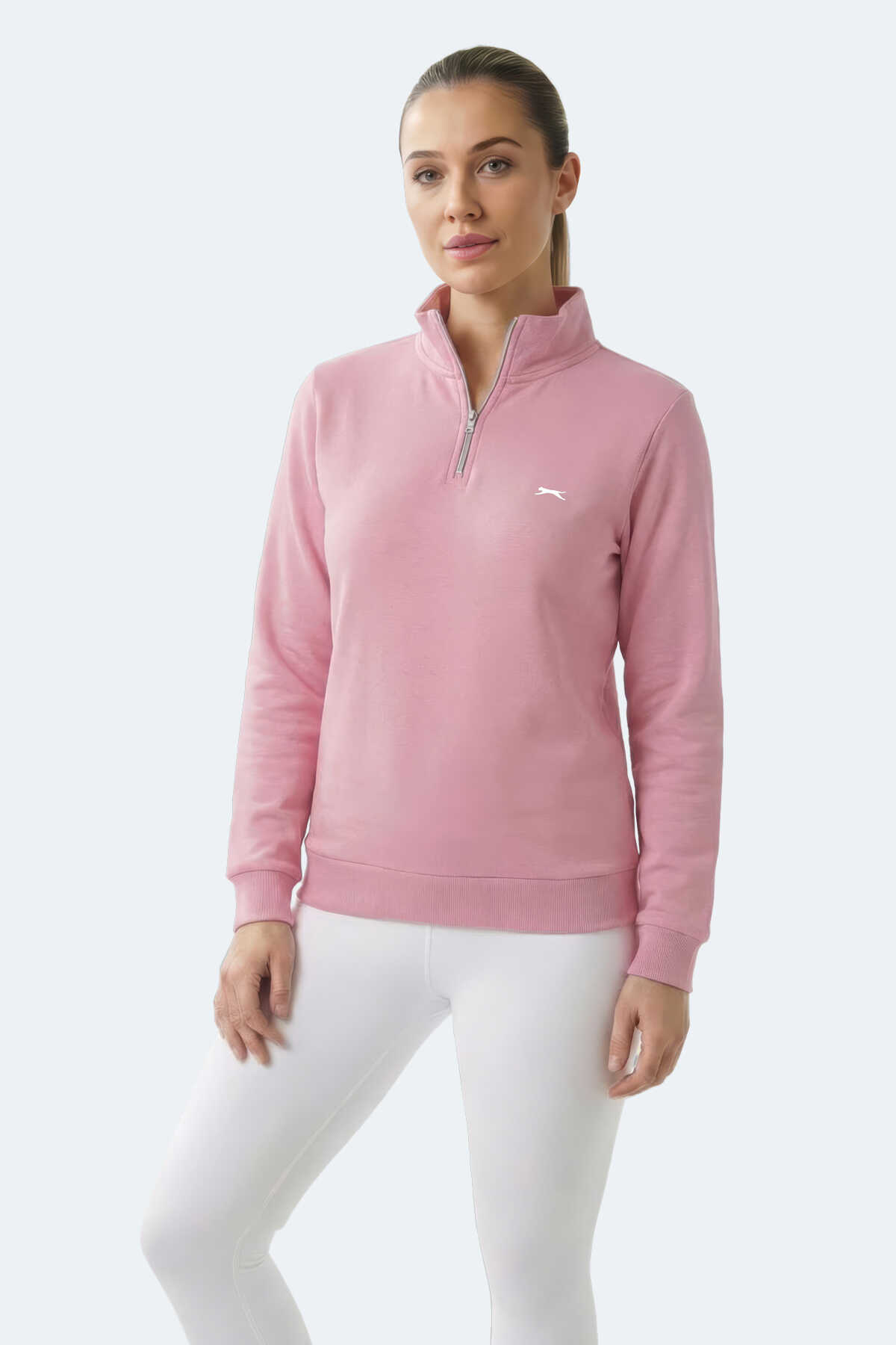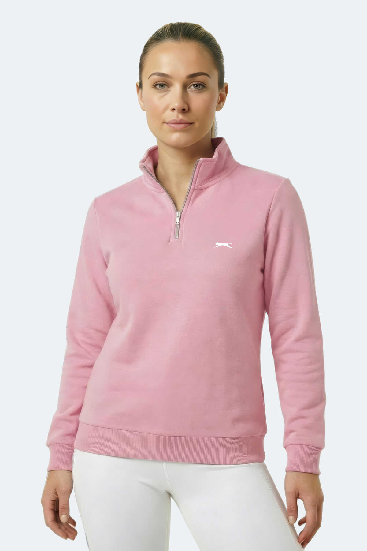 Slazenger MAXIS I Kadın Dik Yaka Fermuarlı Gül Sweatshırt