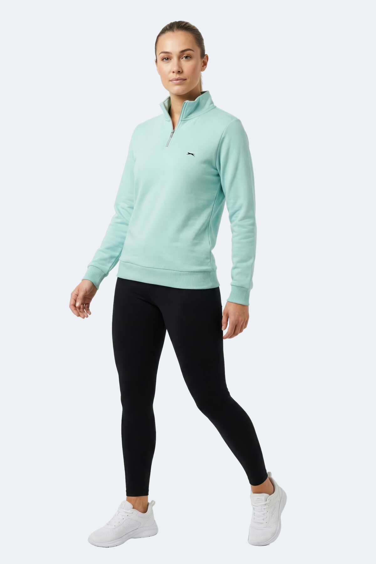 Slazenger MAXIS I Kadın Dik Yaka Fermuarlı Turkuaz Sweatshırt
