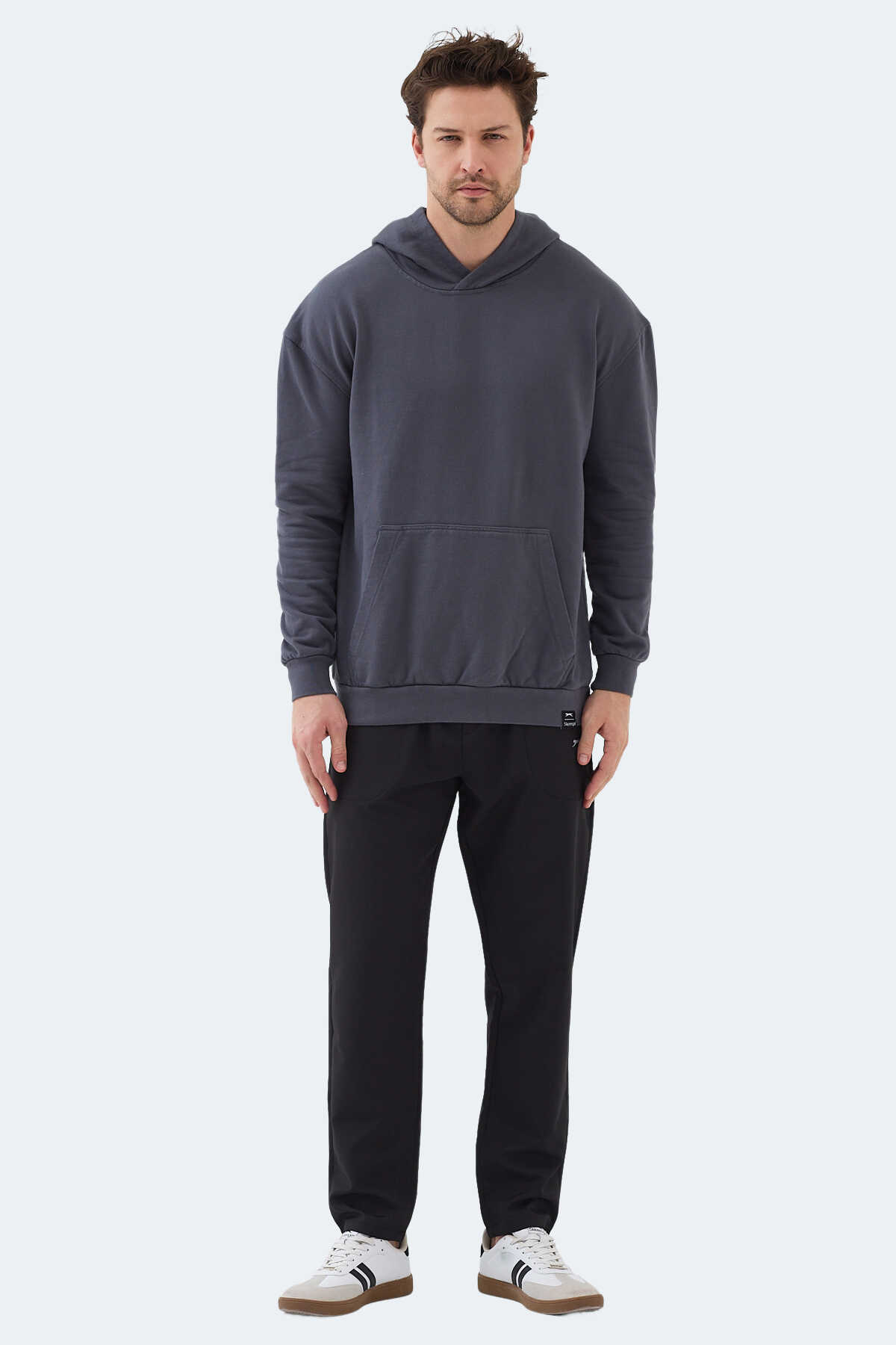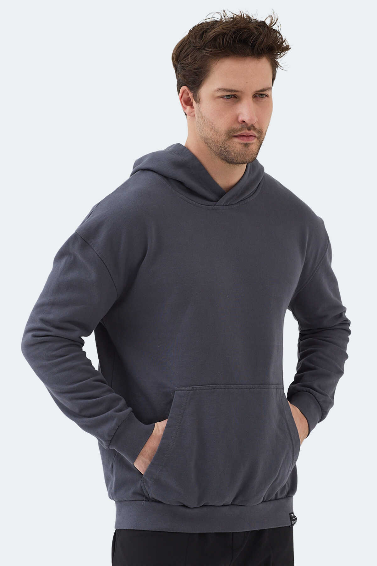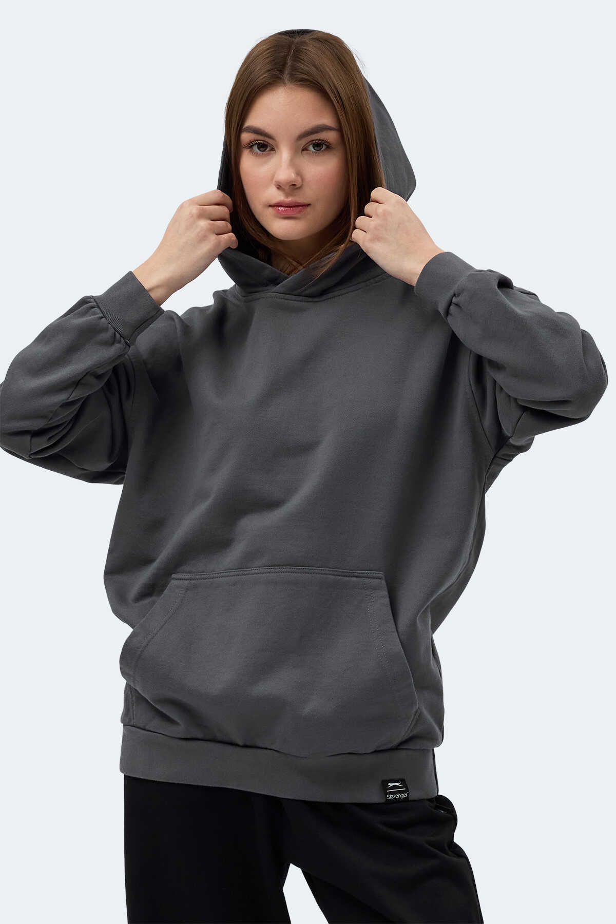 Slazenger VIOLENCE Unisex Kapüşonlu Cepli Oversıze Koyu Gri Sweatshırt